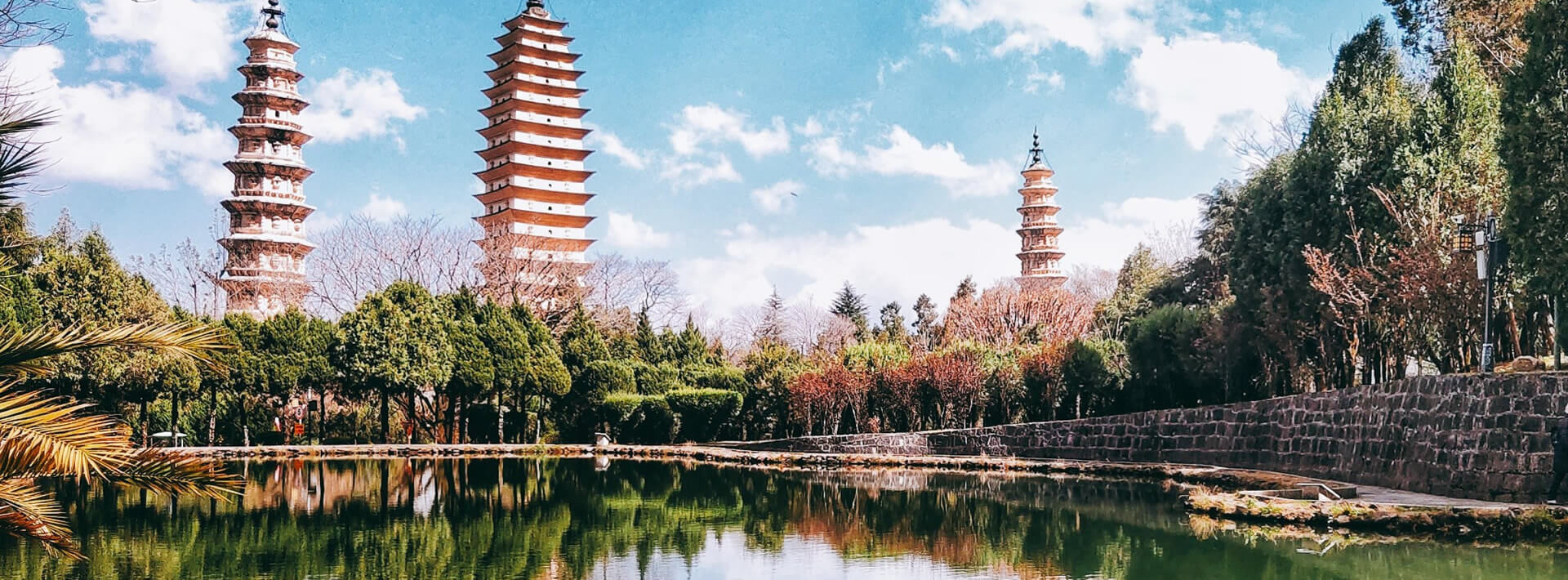 À 3km au nord de Dali, les trois pagodes (Santasi) ont été construites sur l’emplacement du temple Chongsheng, qui était le temple des familles royales. Ce monument est constitué de trois pagodes au sein d’un parc verdoyant au pied des collines représente l’emblème de la ville de Dali.