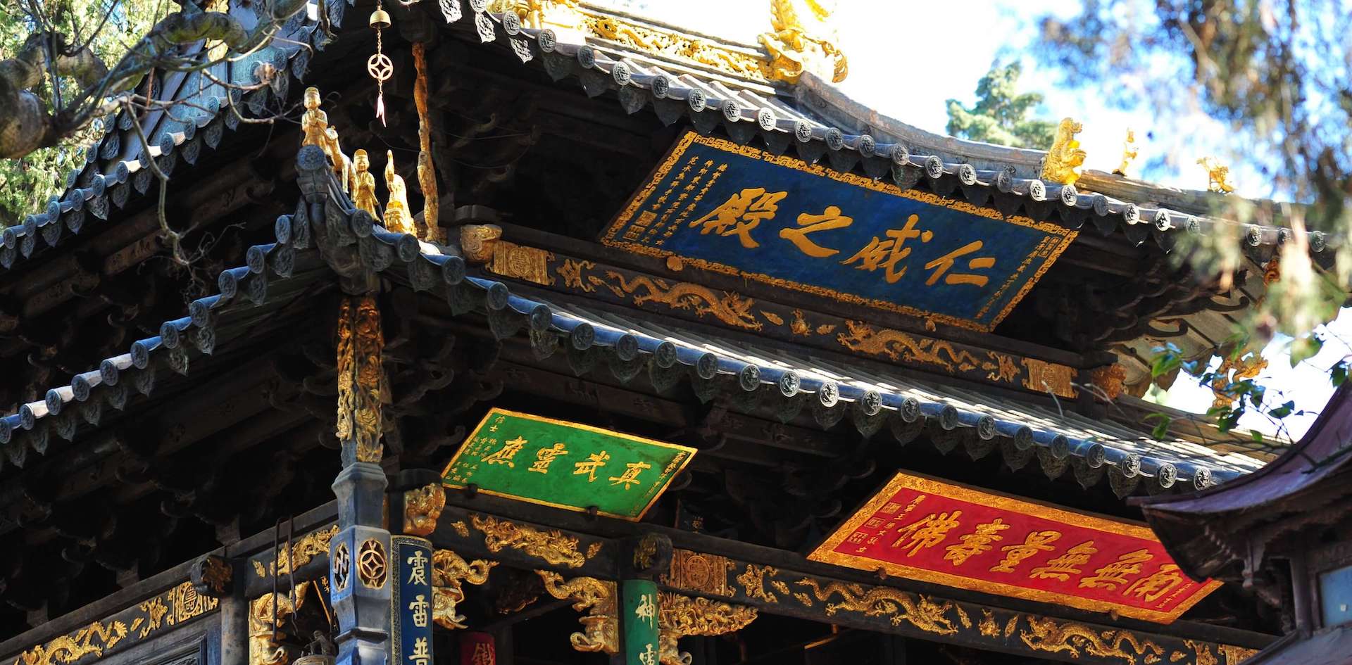 Blotti dans une pinède sur le mont du Chant du phénix au sein de jolis jardins fleuris de camélias, le temple d’or est un sanctuaire taoïste conçu par le général Wusangui. Construit en 1671, ce temple est remarquable pour son architecture caractérisée par un pavillon entièrement en bronze et sa position dominante ouverte sur les paysages verdoyants du Yunnan.